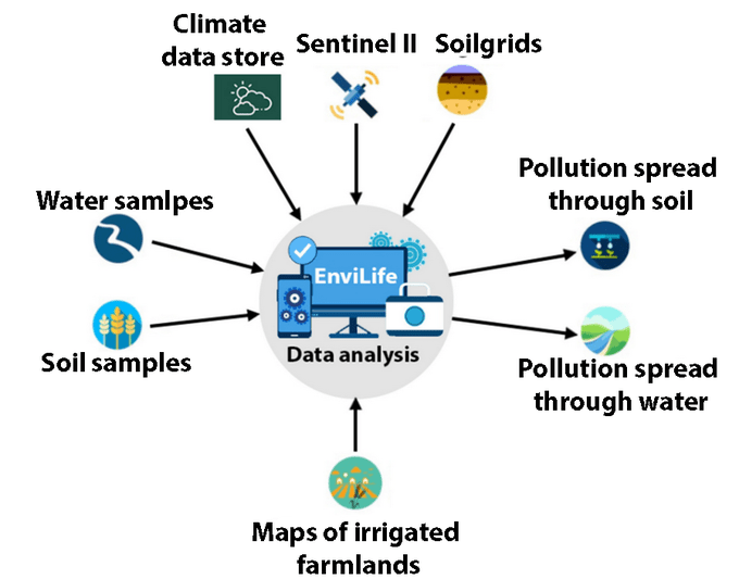 We aim to scan the pollution in soil and water, and predict pollution spread with advanced data processing